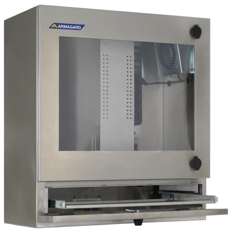 Tätade till IP65 och skyddar mot damm, smuts, olja, fysisk påverkan och stöld, Armagard PC-skåp i rostfritt stål är inte bara bra för säkerhet och skydd, utan perfekt för miljöer som kräver daglig rengöring och hygienkänsliga fabriker som hanterar medicin och livsmedel resurser.