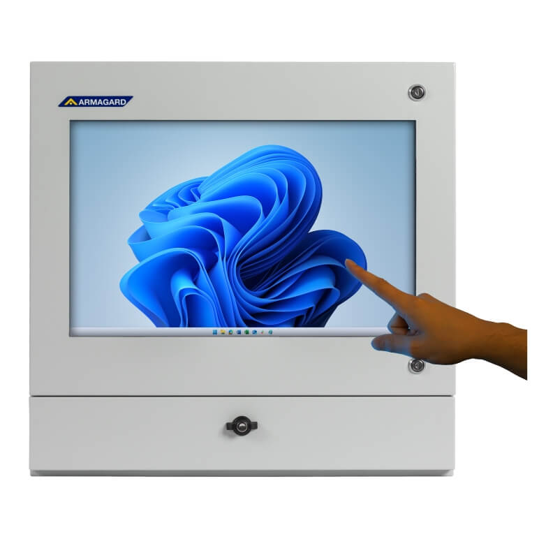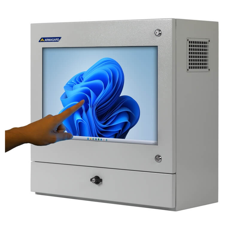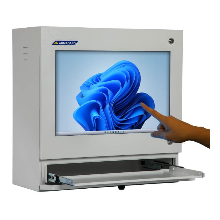 Robust kapsling i pulverlackerat mjukt stål | Industriell verkstad pekskärm kapslingen är tätad enligt IP54, vilket säkerställer att PC och skärm är fullt skyddade. Du får minskad driftstopp och förbättrat systemskydd. |