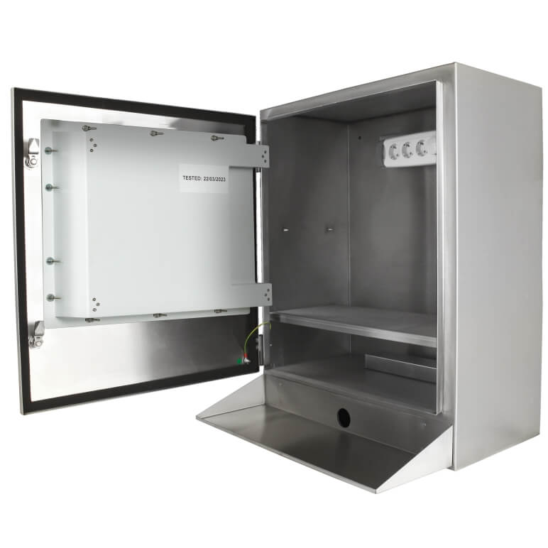Rostfria kvartssvängslås | Bibehåller en tät, vattentät försegling runt höljesluckan. Andra låsalternativ finns tillgängliga för installation i områden med risk för skador eller stöld. |