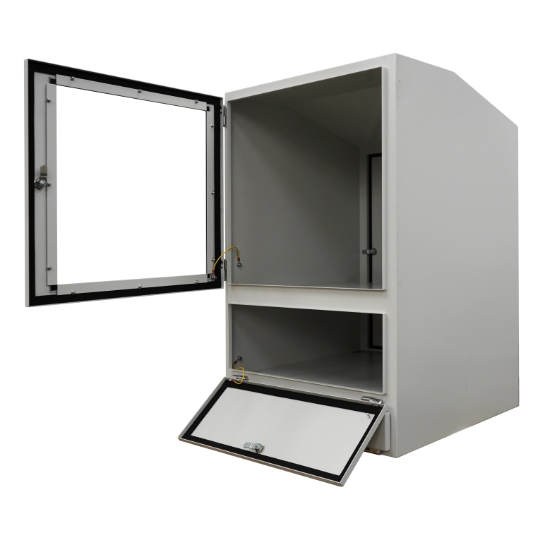 900-seriens oländig datorskåp för verkstad är ett komplett IP54 industridatorskåp, utformat för dammtätt skydd i industri- och verkstadsmiljöer. Tillverkat av pulverlackerat mjukt stål kan detta kompakta datorskåp rymma ett brett urval av konventionella stationära datorer och skärmar (upp till 21", både CRT och plattskärmar).